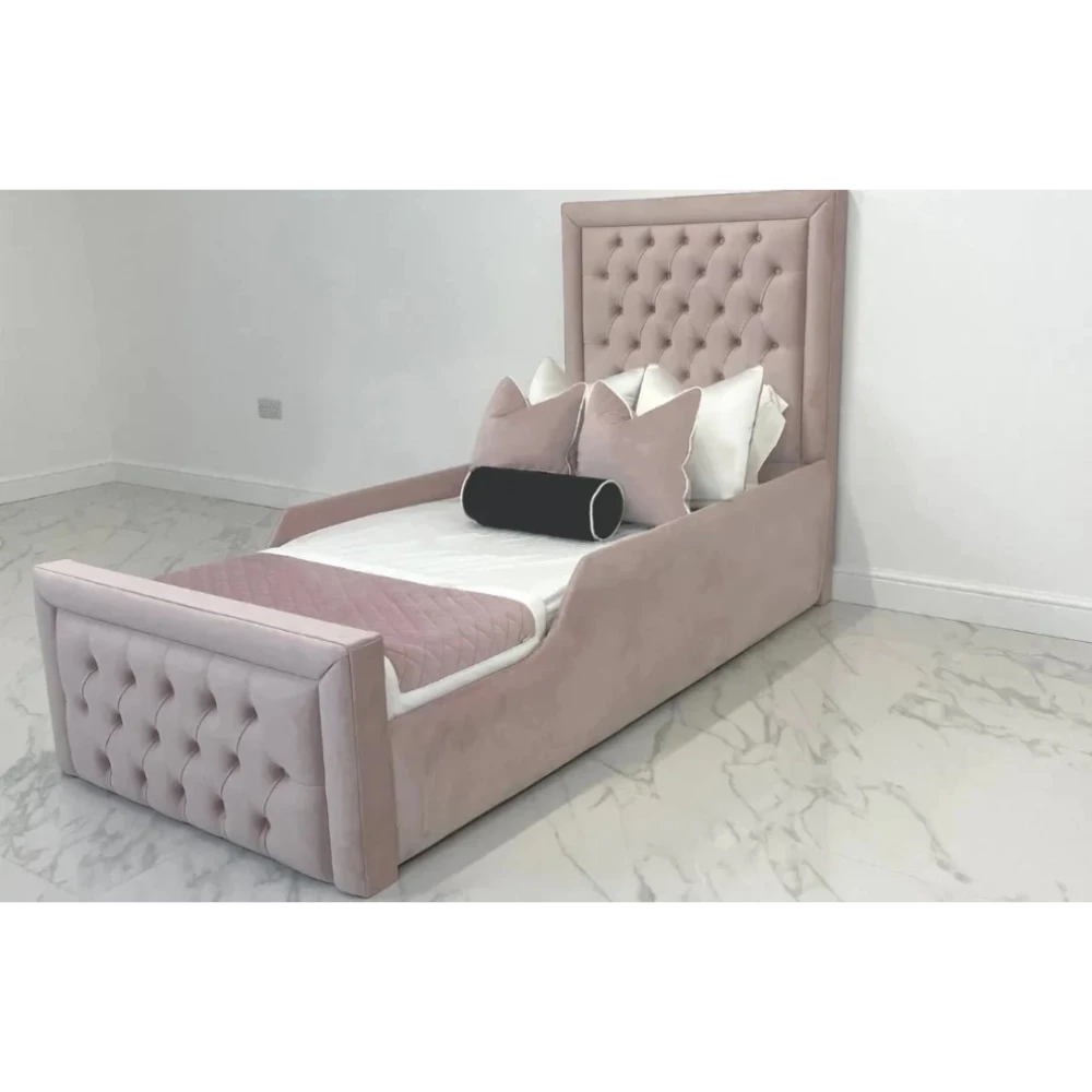 Discover the Arabella Childrens Bed. This product features extensive customization options for sizes, materials, colors, and styles, ensuring each piece is uniquely tailored to your taste. Being proudly made in Yorkshire, supporting local craftsmanship, it guarantees strict quality control and supports the local economy. The product is crafted using high-quality, sustainably sourced materials, offering durability and comfort. With innovative designs with tech-savvy features and ergonomic designs, it stays ahead of trends and provides unmatched convenience. Enjoy cost-effective pricing directly from the manufacturer, which makes it an excellent value for the cost. Our products come with strong warranties and additional services like home viewing, measurement, and assembly, enhancing your purchase experience. Additionally, we offer bespoke service with personalized customer service, ensuring that each client’s needs are thoroughly met. Lastly, we are committed to sustainable manufacturing practices, promoting eco-friendly choices.