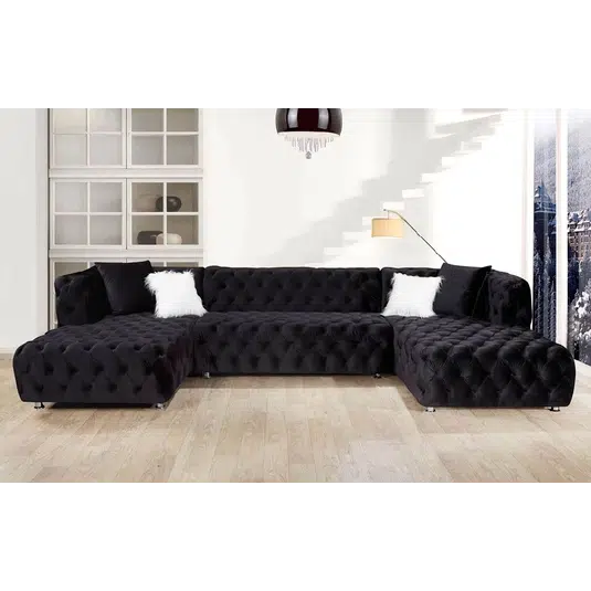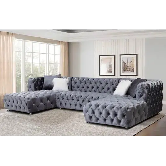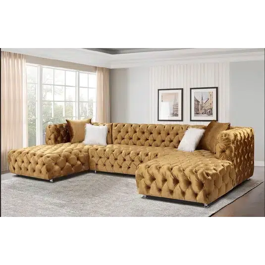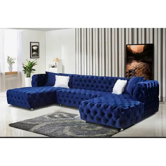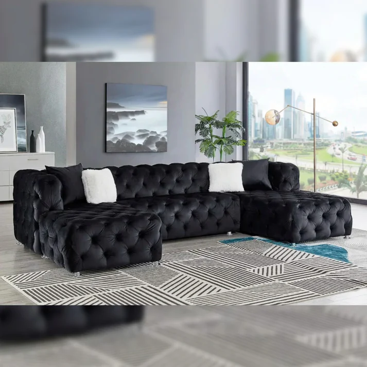 Discover the Astrid Chesterfield Sectional U Shape Velvet Sofa. This product features extensive customization options for sizes, materials, colors, and styles, ensuring each piece is uniquely tailored to your taste. Being proudly made in Yorkshire, supporting local craftsmanship, it guarantees strict quality control and supports the local economy. The product is crafted using high-quality, sustainably sourced materials, offering durability and comfort. With innovative designs with tech-savvy features and ergonomic designs, it stays ahead of trends and provides unmatched convenience. Enjoy cost-effective pricing directly from the manufacturer, which makes it an excellent value for the cost. Our products come with strong warranties and additional services like home viewing, measurement, and assembly, enhancing your purchase experience. Additionally, we offer bespoke service with personalized customer service, ensuring that each client’s needs are thoroughly met. Lastly, we are committed to sustainable manufacturing practices, promoting eco-friendly choices.
