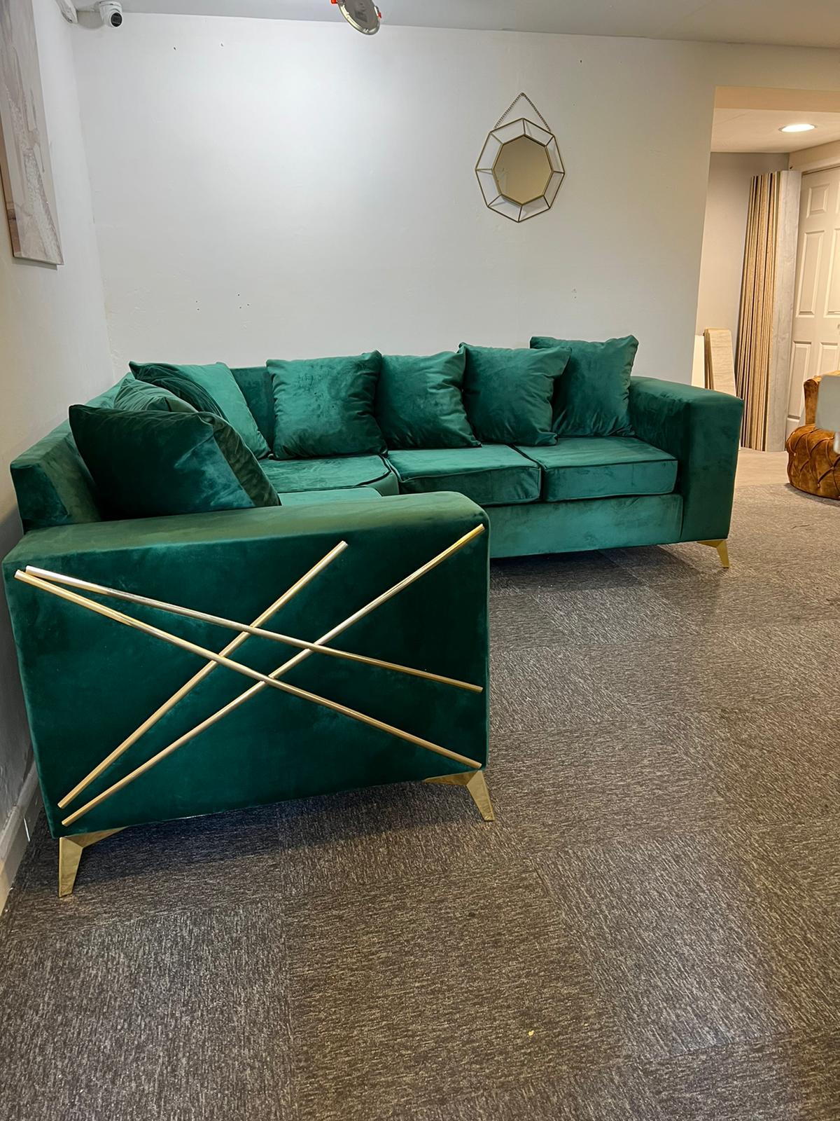 Discover the Athena Metal Geometric Trim Sofa. This product features extensive customization options for sizes, materials, colors, and styles, ensuring each piece is uniquely tailored to your taste. Being proudly made in Yorkshire, supporting local craftsmanship, it guarantees strict quality control and supports the local economy. The product is crafted using high-quality, sustainably sourced materials, offering durability and comfort. With innovative designs with tech-savvy features and ergonomic designs, it stays ahead of trends and provides unmatched convenience. Enjoy cost-effective pricing directly from the manufacturer, which makes it an excellent value for the cost. Our products come with strong warranties and additional services like home viewing, measurement, and assembly, enhancing your purchase experience. Additionally, we offer bespoke service with personalized customer service, ensuring that each client’s needs are thoroughly met. Lastly, we are committed to sustainable manufacturing practices, promoting eco-friendly choices. Incorporating this seasons hottest interior design trend weve manufactured a range of sofas with metallic gold and silver accents/trims.