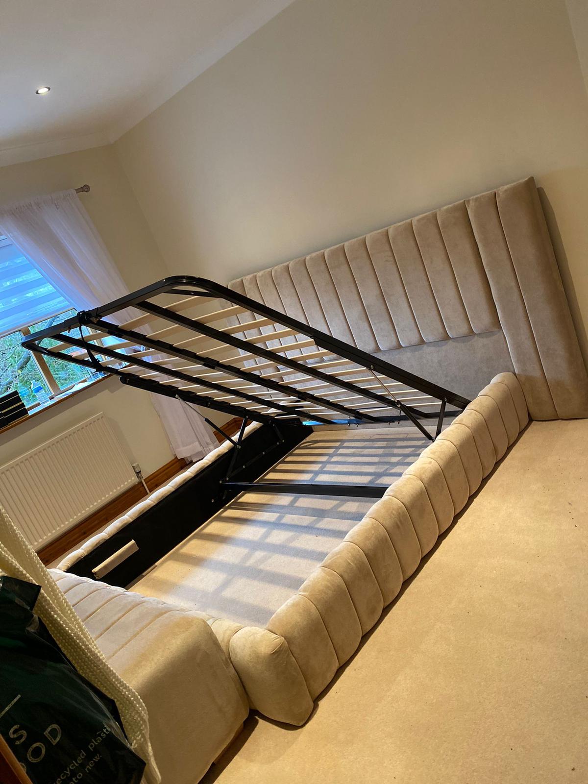 The extra wide Continental bed frame has the Option of practical gas lift storage this makes the space under the mattress available for storage and is lifted up using a gas piston system.