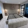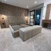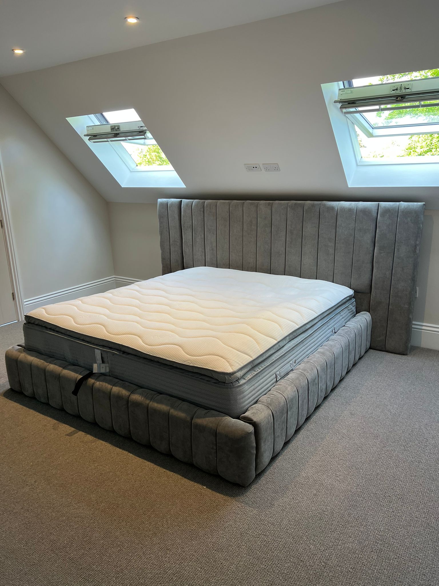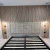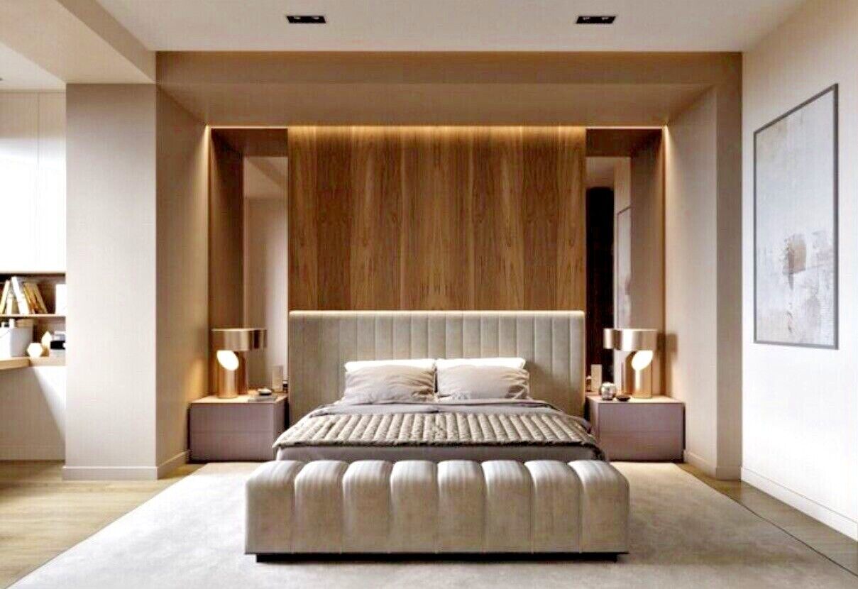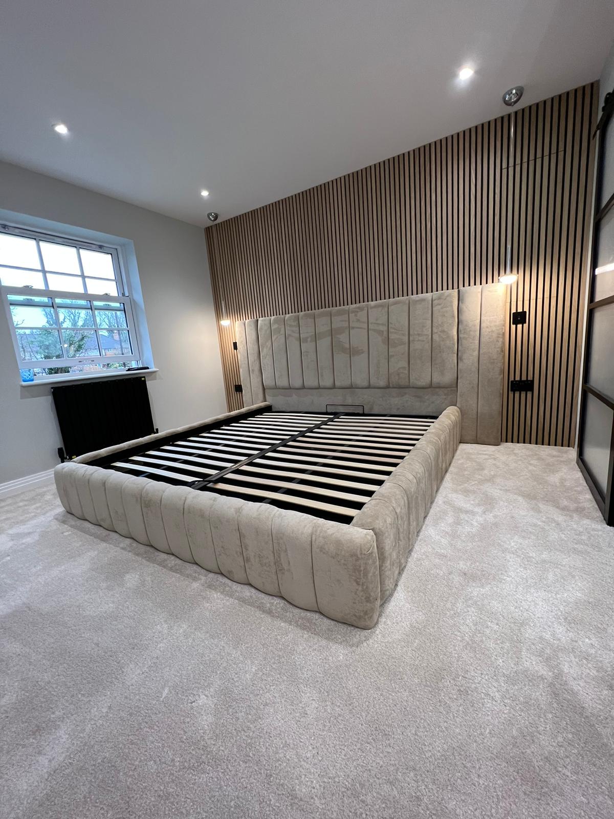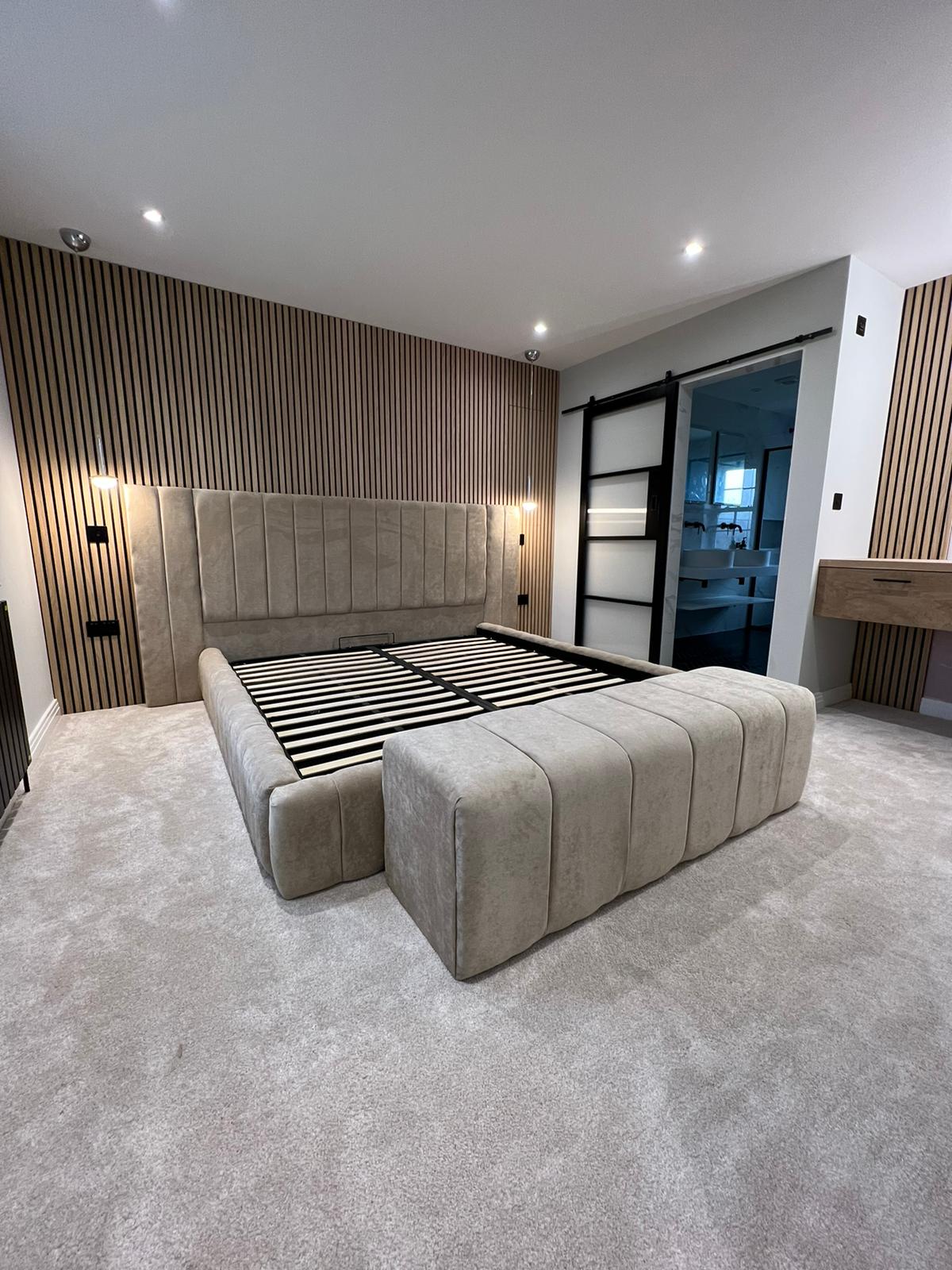Modern panelled art deco design headboard which is extended at either side to give it a 5 star luxury hotel look.