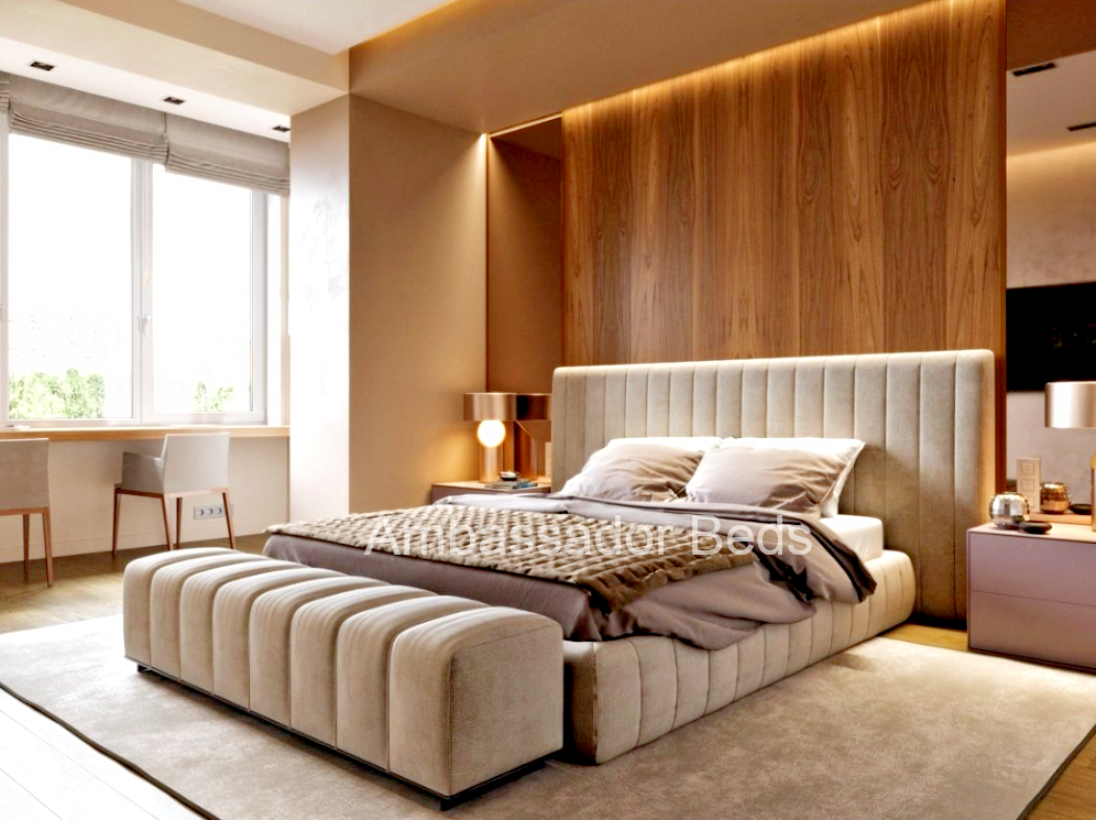 Discover the Continental Wide Headboard Panel Bed. This product features extensive customization options for sizes, materials, colors, and styles, ensuring each piece is uniquely tailored to your taste. Being proudly made in Yorkshire, supporting local craftsmanship, it guarantees strict quality control and supports the local economy. The product is crafted using high-quality, sustainably sourced materials, offering durability and comfort. With innovative designs with tech-savvy features and ergonomic designs, it stays ahead of trends and provides unmatched convenience. Enjoy cost-effective pricing directly from the manufacturer, which makes it an excellent value for the cost. Our products come with strong warranties and additional services like home viewing, measurement, and assembly, enhancing your purchase experience. Additionally, we offer bespoke service with personalized customer service, ensuring that each client’s needs are thoroughly met. Lastly, we are committed to sustainable manufacturing practices, promoting eco-friendly choices.