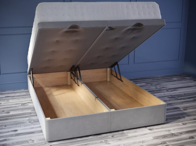 One of the standout features of this divan bed is the ottoman storage. The entire base of the bed is designed to lift using gas lift pistons , revealing a spacious storage area beneath. This storage is ideal for stowing away extra bedding, pillows, or any other items you’d like to keep neatly hidden in your bedroom. This can be opened from the foot end or with the option from opening on either side .