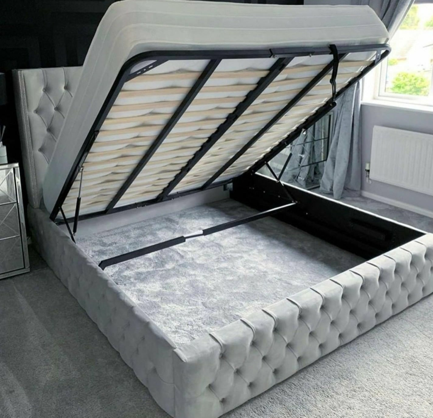 The exterior of the bed will look exactly the same as the non storage bed so there is no compromise on style, to access storage simply give the fabric handle at the end of the bed a little tug this will operate the lift system which then raises the bed frame and mattress .