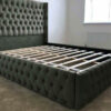 The elegant Kensington bed frame incorporates a sleek Wing Back design with a Chesterfield upholstered headboard.