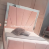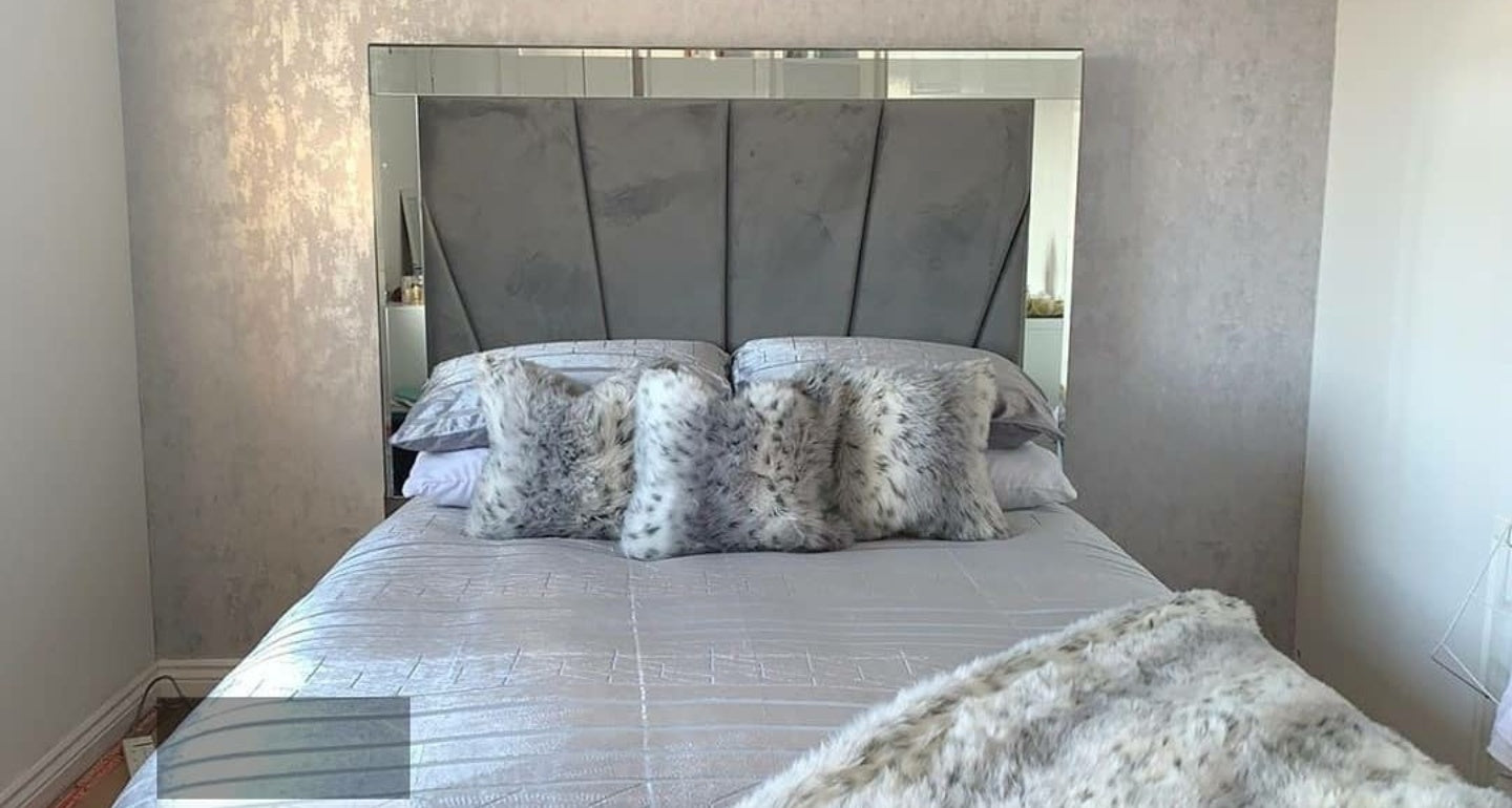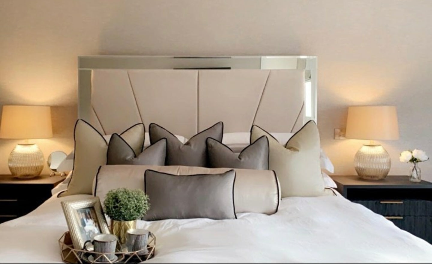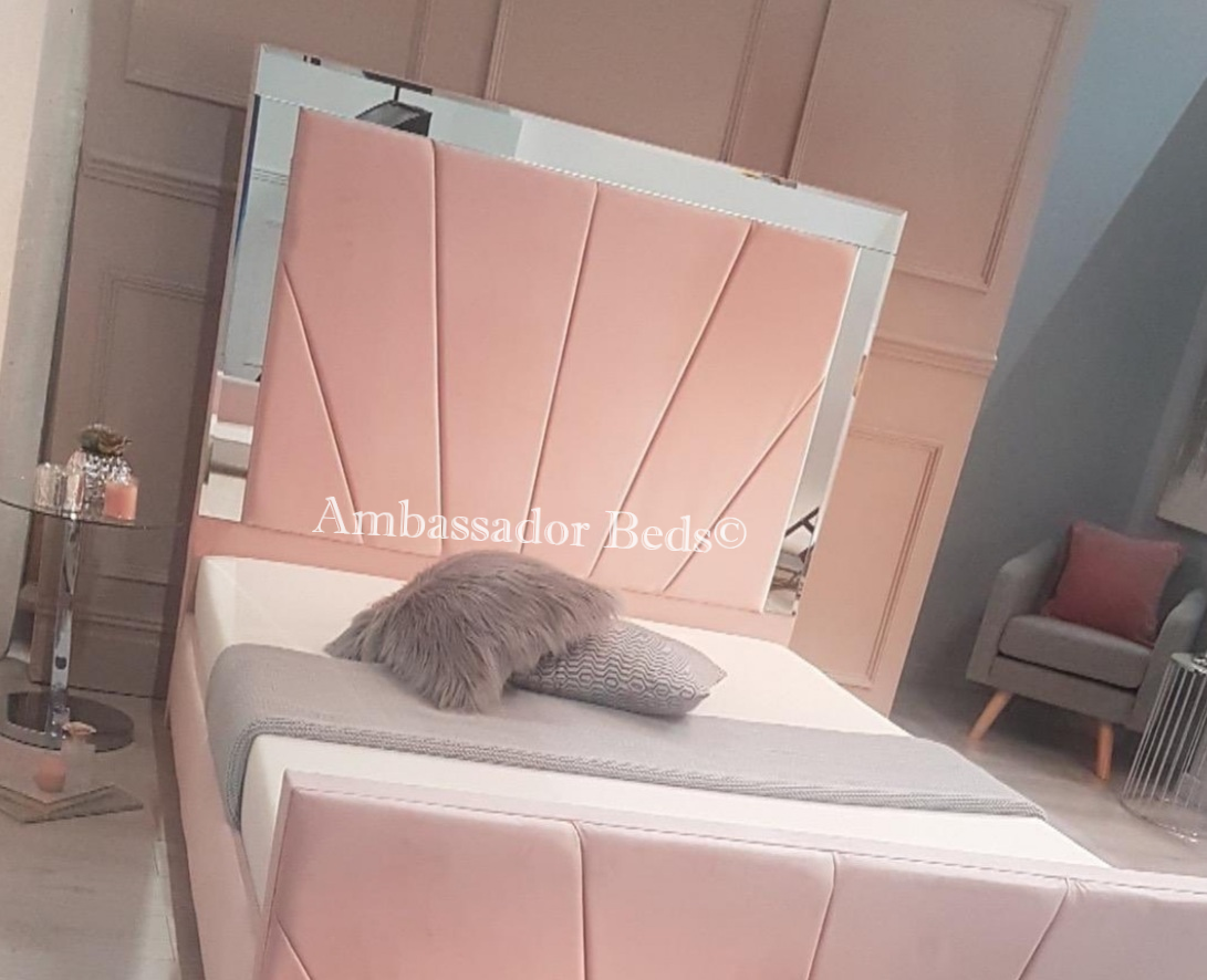 These glamorous beds all incorporate a mirrored glass border on the headboard, currently all the rage in interior design circles.