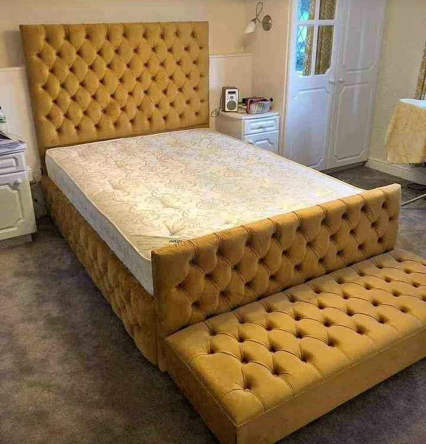 Discover the Rania Tall Chesterfield Bed. This product features extensive customization options for sizes, materials, colors, and styles, ensuring each piece is uniquely tailored to your taste. Being proudly made in Yorkshire, supporting local craftsmanship, it guarantees strict quality control and supports the local economy. The product is crafted using high-quality, sustainably sourced materials, offering durability and comfort. With innovative designs with tech-savvy features and ergonomic designs, it stays ahead of trends and provides unmatched convenience. Enjoy cost-effective pricing directly from the manufacturer, which makes it an excellent value for the cost. Our products come with strong warranties and additional services like home viewing, measurement, and assembly, enhancing your purchase experience. Additionally, we offer bespoke service with personalized customer service, ensuring that each client’s needs are thoroughly met. Lastly, we are committed to sustainable manufacturing practices, promoting eco-friendly choices.