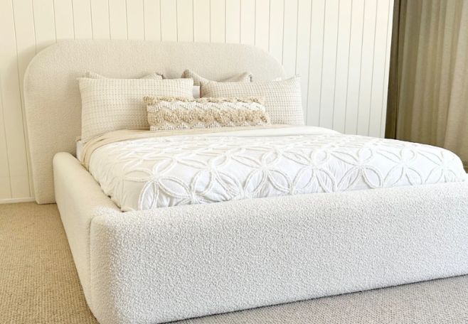 With a soft, curved headboard for a smooth and contemporary feel, each Teddy bouclé bed is also made with a sturdy wooden base, providing support and comfort for a blissful bedtime. Utilizing the seasons hottest fabric which is being used in all high end furniture, soft and textured just demands to be touched and stroked.